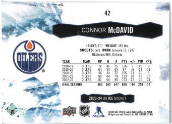 2023-24 UD Ice Purple Connor McDavid č. 42