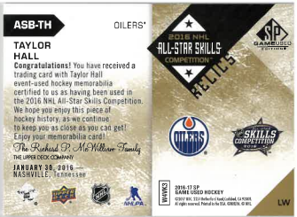 2016-17 UD SP Game Used All Star Skills Taylor Hall /15 č. ASB-TH