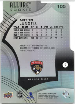 2021-22 UD Allure Orange Slice Anton Lundell č. 105