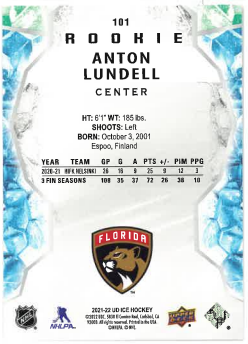 2021-22 UD Ice Orange Rookie Anton Lundell č. 101