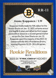 2023-24 Trilogy Rookie Renditions Blue Joona Koppanen /499 č. RR-11