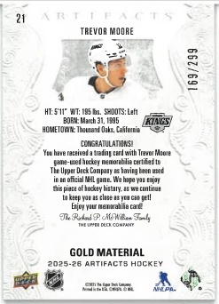 2025-26 UD Artifacts Gold Material Trevor Moore /299 č. 21