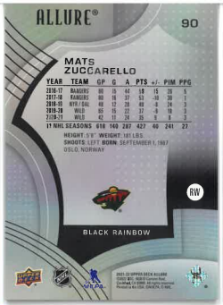 2021-22 UD Allure Black Rainbow Mats Zuccarello č. 90