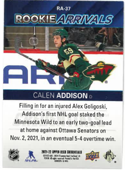 2021-22 UD Credentials Rookie Arrivals Calen Addison č. RA-37