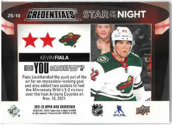 2021-22 UD Credentials Star Of The Night Kevin Fiala č. 2S-10