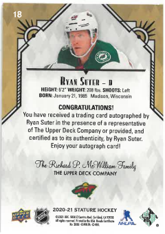 2020-21 UD Stature Auto Ryan Sutter č. 18