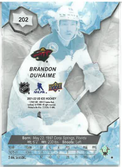 2021-22 UD Ice Premieres Brandon Duhaime /999 č. 202