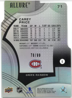 2021-22 UD Allure Green Rainbow Carey Price /99 č. 71