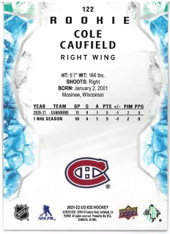 2021-22 UD Ice Lavender Rookie Cole Caufield č. 122