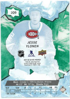 2021-22 UD Ice Premieres Green Jesse Ylonen /799 č. 209