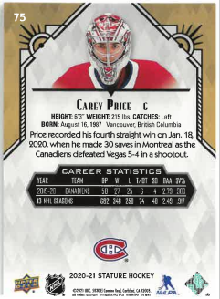 2020-21 UD Stature Carey Price č. 75