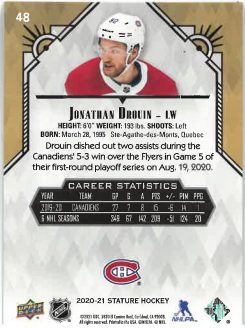 2020-21 UD Stature Jonathan Drouin č. 48
