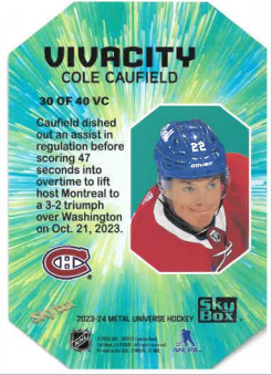 2023-24 UD Metal Universe Vivacity Cole Caufield č. 30 of 40 VC
