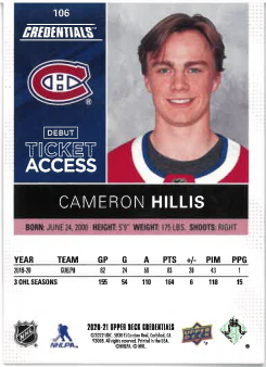 2020-21 UD Credentials Debut Ticket Access /199 č. 106