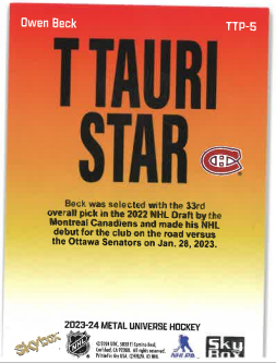 2023-24 UD Metal Universe T Tauri Star Owen Beck č. TTP-5