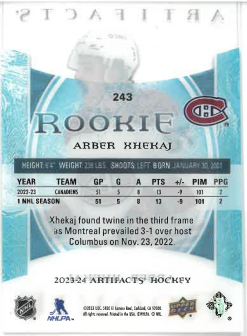 2023-24 UD Artifacts Cear Cut Update Rookie Arber Xhekaj č. 243