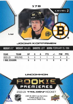 2023-24 UD Trilogy Rookie Premieres lvl.2 Joona Koppanen /699 č. 178