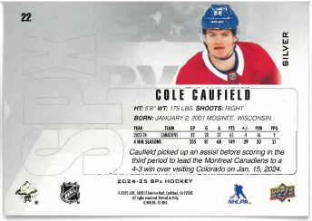 2024-25 UD SPx Silver Cole Caufield č. 22