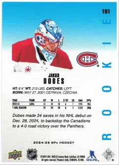 2024-25 UD SPx Rookie Jakub Dobeš č. 151