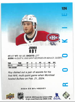 2024-25 UD Spx Rookie Joshua Roy č. 124