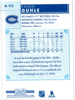 2022-23 UD O-Pee-Chee Platinum Retro Rookie Kaiden Guhle č. R-92