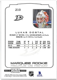 2022-23 UD O-Pee-Chee Platinum Marquee Rookie Lukáš Dostál č. 210