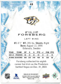 2022-23 UD Ice Purple Filip Forsberg č. 48