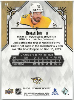 2020-21 UD Stature Roman Josi č. 41