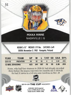 2019-20 UD The Cup Pekka Rinne /249 č. 31
