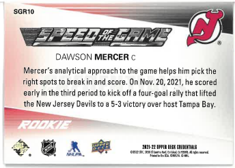 2021-22 UD Credentials Speed Of The Game Dawson Mercer č. SGR10