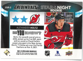 2021-22 UD Credentials Star Of The Night Rookie Alexander Holtz č. 2SR-2