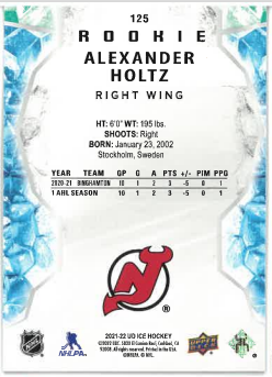 2021-22 UD Ice Green Rookie Alexander Holtz č. 125