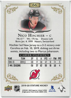 2019-20 UD Stature Nico Hischier č. 66