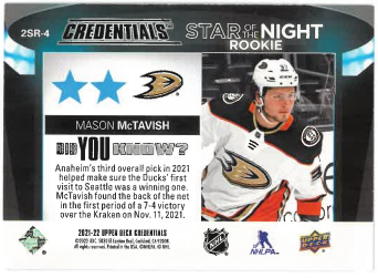 2021-22 UD Credentials Star of the Night Rookie Mason McTavish č. 2SR-4