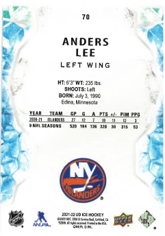 2021-22 UD Ice Orange Anders Lee č. 70