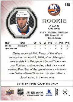 2016-17 UD The Cup Red Foil Rookie Alan Quine /8 č. 188