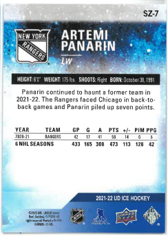 2021-22 UD Ice Sub Zero Artemi Panarin č. SZ-7
