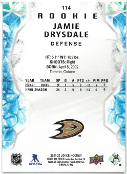 2021-22 UD Ice Green Rookie Jamie Drysdale č. 114