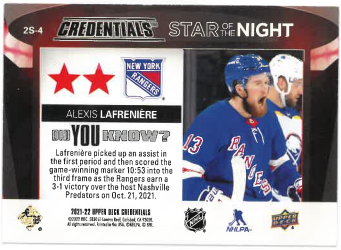 2021-22 UD Credentials Star Of The Night Alexis Lafreniére č. 2S-4