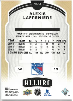 2020-21 UD Allure Rookie Alexis Lafreniére č. 100
