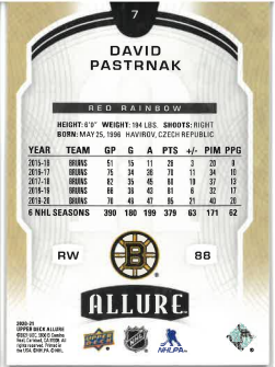 2020-21 UD Allure Red Rainbow David Pastrňák č. 7