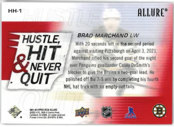2021-22 UD Allure Hustle, Hit and Never Quit Brad Marchand č. HH-1