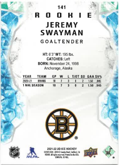2021-22 UD Ice Green Rookie Jeremy Swayman č. 141