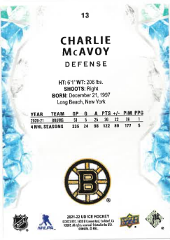 2021-22 UD Ice Orange Charlie McAvoy č. 13