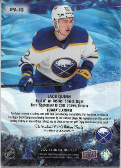 2022-23 UD ICE Premieres Jersey Jack Qiunn č. IPA-JQ
