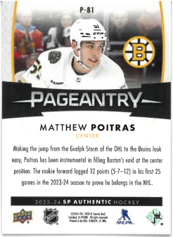 2023-24 UD SP Authentic Pageantry Matthew Poitras č. P-81