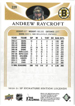 2020-21 UD Signature Edition Legends Andrew Raycroft č. 229