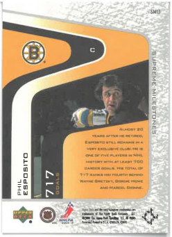 2000-01 UD Legends Supreme Milestones Phil Esposito č. SM13