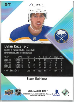2024-25 UD Allure Black Rainbow Dylan Cozens č. 57