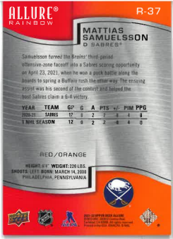 2021-22 UD Allure Red/Orange Mattias Samuelsson č. R-37